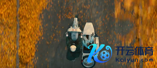 还有朗父骑车带朗朗学琴,空中俯视视角,神态浓烈一忽儿转过春夏秋冬。