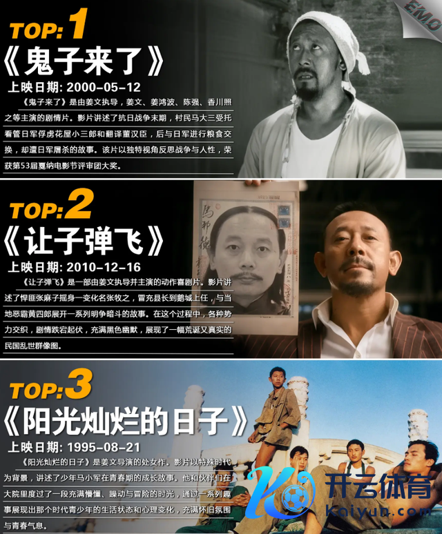 《鬼子来了》、《让枪弹飞》、《阳光灿烂的日子》、《太阳照常腾飞》、《魔高一尺》、《一步之遥》、《勇士出少年》每一部皆制作细致。