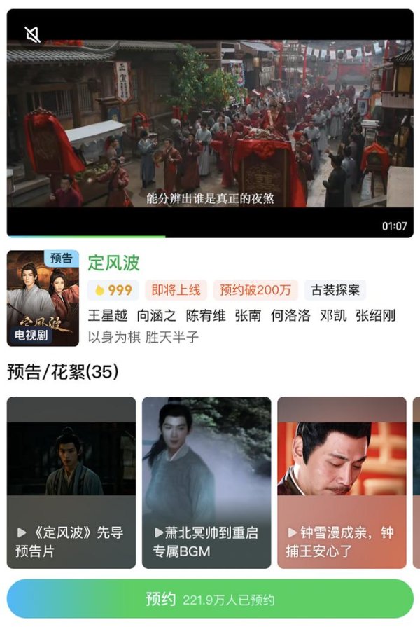正巧的是,这两部剧齐是古装悬疑剧,其中,《朝雪录》在播出技艺,热度一谈上扬,登顶微博、抖音、灯塔、猫眼等多个平台的剧集热度榜单。《定风云》则是原创脚本,七大连环案件相同引东谈主期待,现在在爱奇艺站内预约量如故卓越220万。