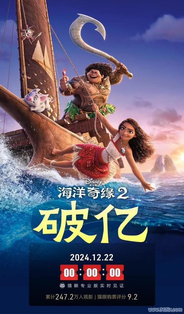TOP7 小戴维·G·德瑞克、杰森·汉德和达娜·莱杜克斯导演,澳丽伊·卡瓦洛、谈恩·强森和瑞秋·豪斯配音的动画片《海洋奇缘2》单日票房265.34万,位列单日票房榜第七名,票房占比2.5%,排片占比3.3%,上映23天累计总票房9963.6万东谈主民币,为止发文手艺票房冲破1亿东谈主民币大关。
