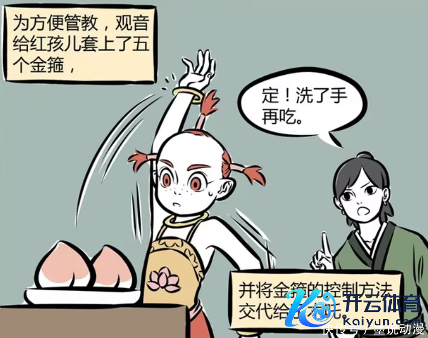《非东说念主哉》漫画版中欧洲杯体育,红孩儿被不雅音收服初期,由木吒管教。不外红孩儿平素野惯了,仍是不降服管教。为了便捷木吒管教红孩儿,不雅音给红孩儿套上五个金箍。不外红孩儿亦然利害,哪怕是站着王人能睡着。 红孩儿在一千多年前,那即是个伴食宰相。在不雅音收服之后,将他交给惠岸使臣木吒管教。能够唯有木吒这种秉性,能够管教红孩儿。不外红孩儿在这时分还很抵挡,罕见是对不雅音,那是突出不敬。另外红孩儿昔时的发型跟当今有许多数是区别,主要亦然三撮红发。 木吒暗意红孩儿的发型还挺悦目,关联词说到这里的时分,