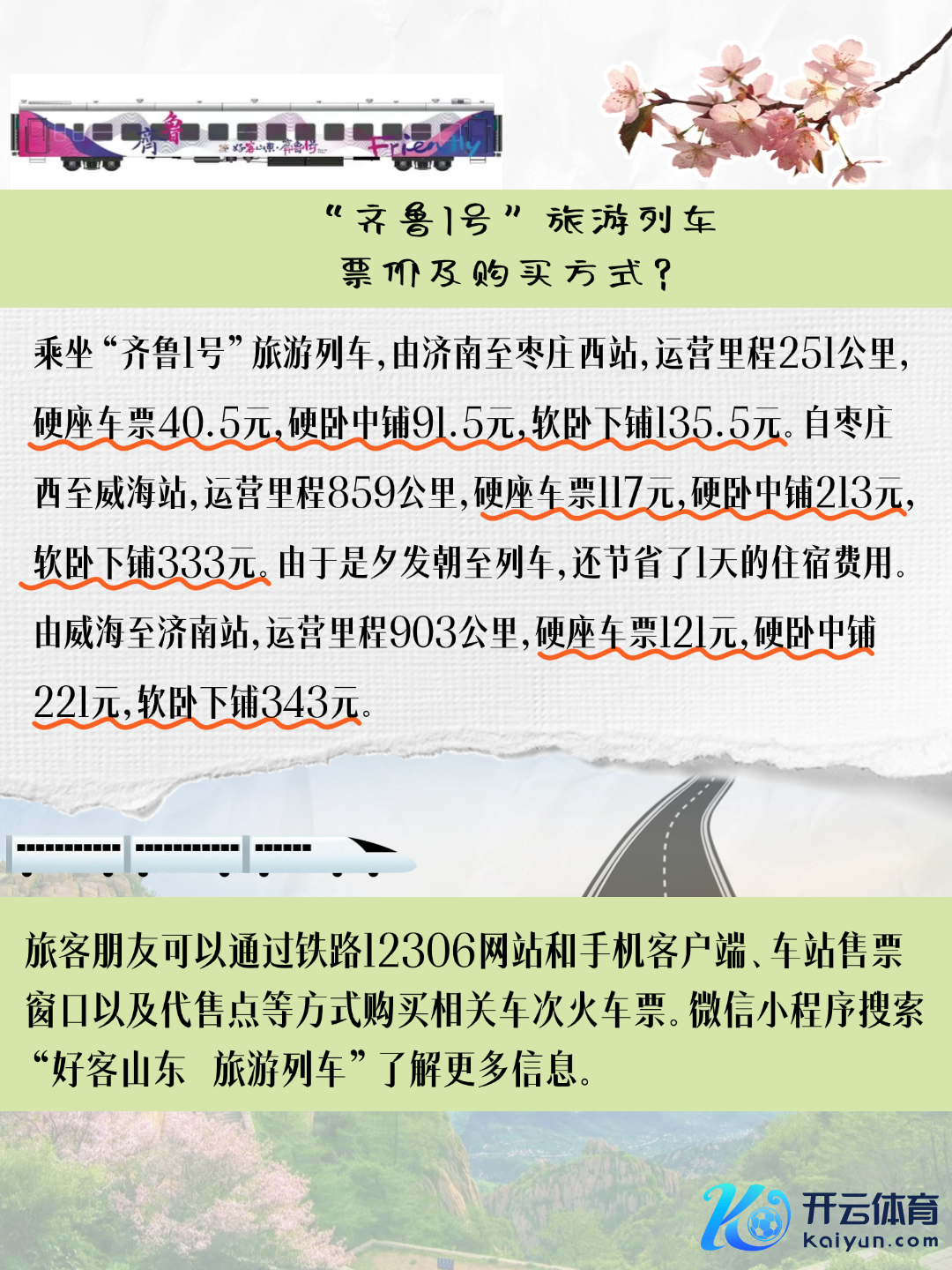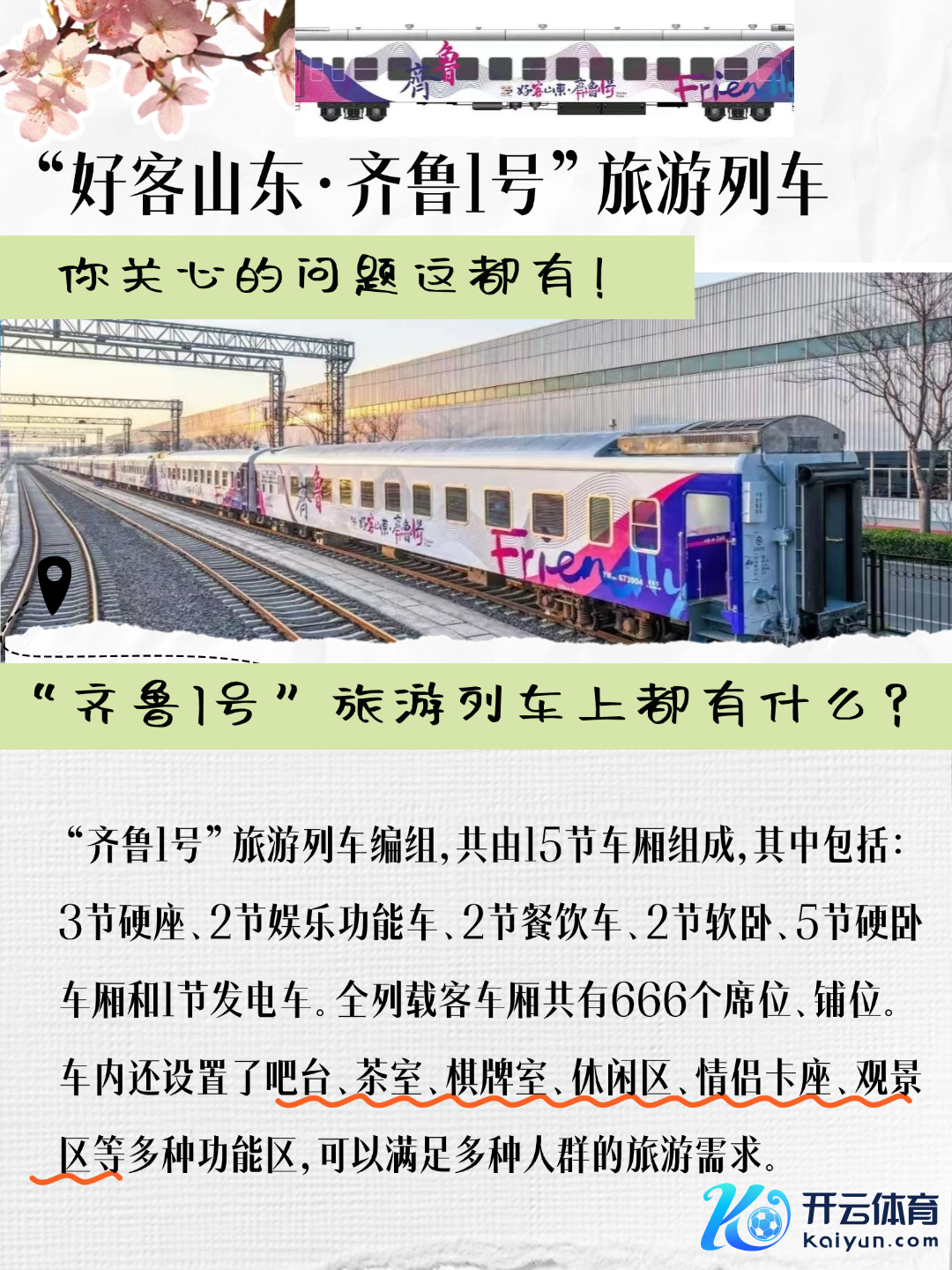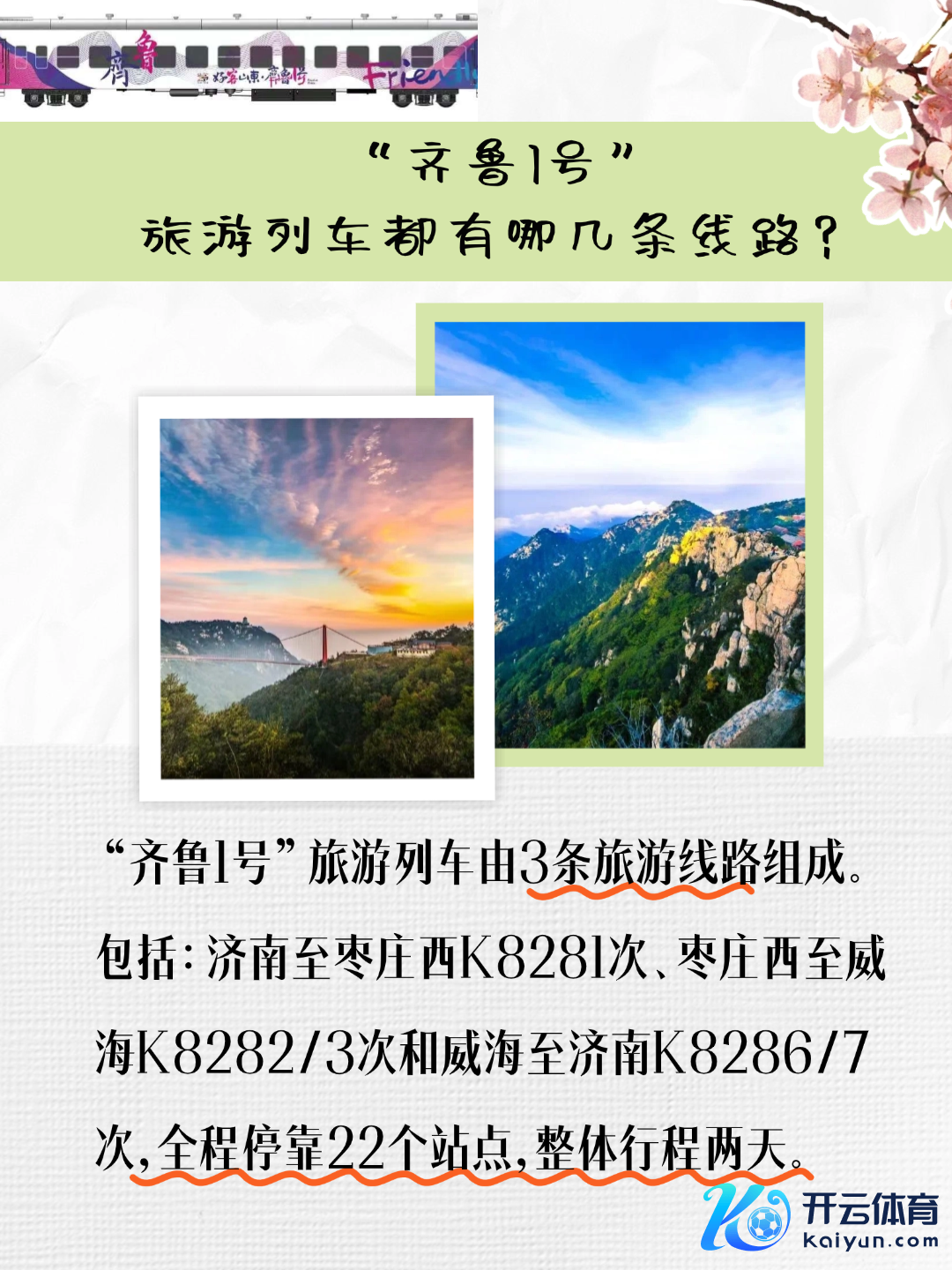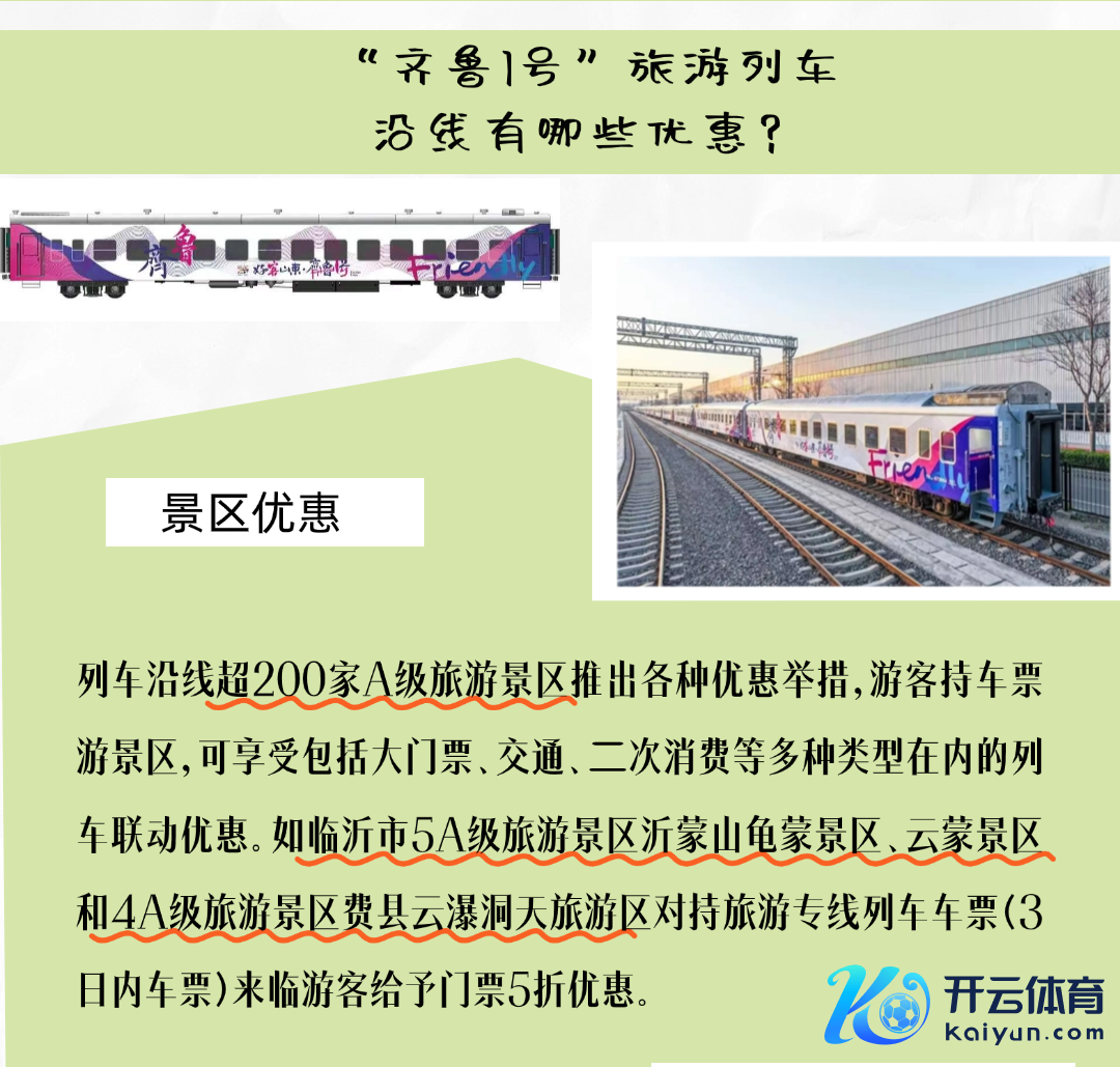 4月10日上昼开云体育,“好客山东·皆鲁1号”旅游列车首刊行径在济南火车站举行。 “好客山东·皆鲁1号”旅游列车由绿皮火车进行适老化、惬意化改良而来,融入山东文化特质,增多失业文娱不雅光奇迹功能,是集“吃住行游购娱”于一体的山东特质旅游列车。列车由3条旅游长远(济南至枣庄西K8281次、枣庄西至威海K8282/3次和威海至济南K8286/7次)构成,路过山东11个市22个站点,遮掩沿线200多家境区,吸收“车票+景区+旅舍”联动优惠,让旅客更好体验“好客山东 好品山东”的和蔼和魔力。 (宇宙新