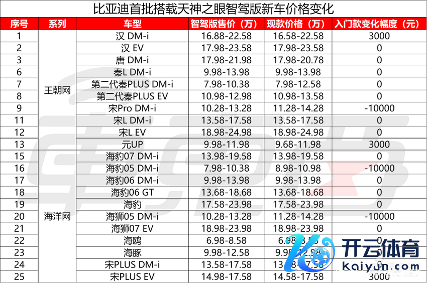 ▲比亚迪首批搭载天使之眼智驾版新车价钱变化