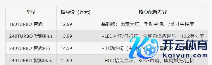 接下来,我们就要插足今天的重头戏了:建设分析。2025款念念域提供了多种建设版块,从12.99万的180TURBO智趣版,到15.99万的240TURBO智趣Max,价钱差距不小,建设各别也很大。那么,到底哪个版块最值得买呢?