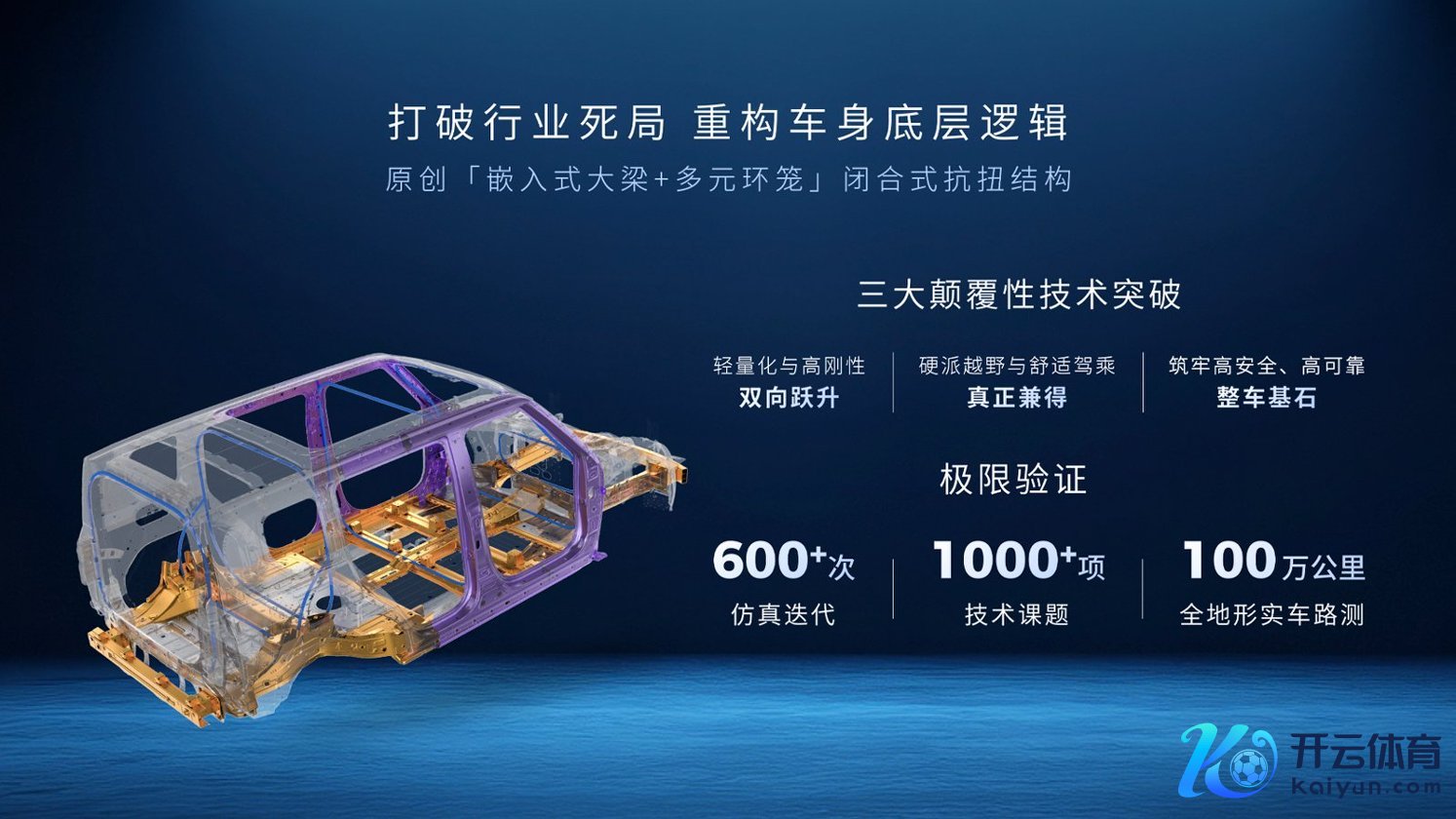 星舰车身以原创镶嵌式大梁+多元环笼设想,破解车身结构行业贫窭,打造“可城可野”万能车型平台,进步汽车产物“场景化、万能化”。数据露馅,国内SUV用户87%用于城市通勤,65%有户外越野需求,传统车身结构无法兼顾景观与越野。星舰车身历经29个月研发、600次仿真迭代、100万公里全地形路测,整车扭转刚度达38000N·m/°,为传统硬派越野标杆近4倍,盘曲刚度达行业主流1.5倍,单轮悬空1米车身变形不及1.5mm,城市过弯侧倾裁减20%。