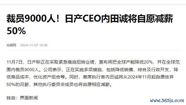 当今,日产在全球畛域内削减产能20%,并裁人9000东谈主。此外,日产还出售了三菱汽车10%的股份,筹得约686.4亿日元资金。日产汽车CEO内田诚及解决委员会成员凯旋摊牌,自觉削减50%的薪酬,以示与公司共渡难关的决心。