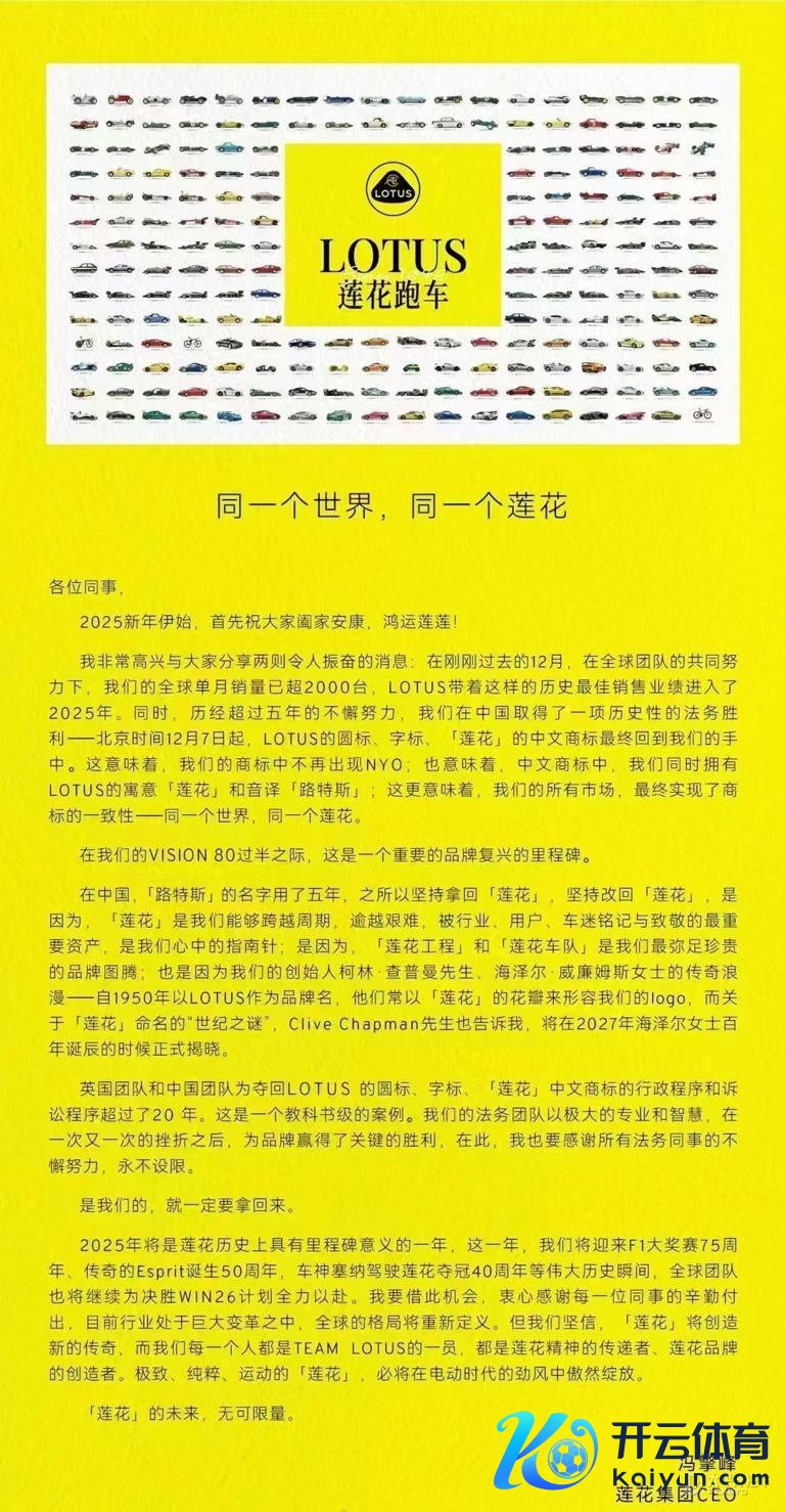 与此同期,莲花跑车2024年的内行单月销量已超2000台,创造了LOTUS历史最好销售功绩。在昔日很长一段时分里,“莲花”这个名字承载着多量车迷的情感与期待。如今,历经周折夺回“莲花”商标,终了“并吞个寰球,并吞个莲花”的愿景,这无疑为品牌的发展注入了新的活力与能源。