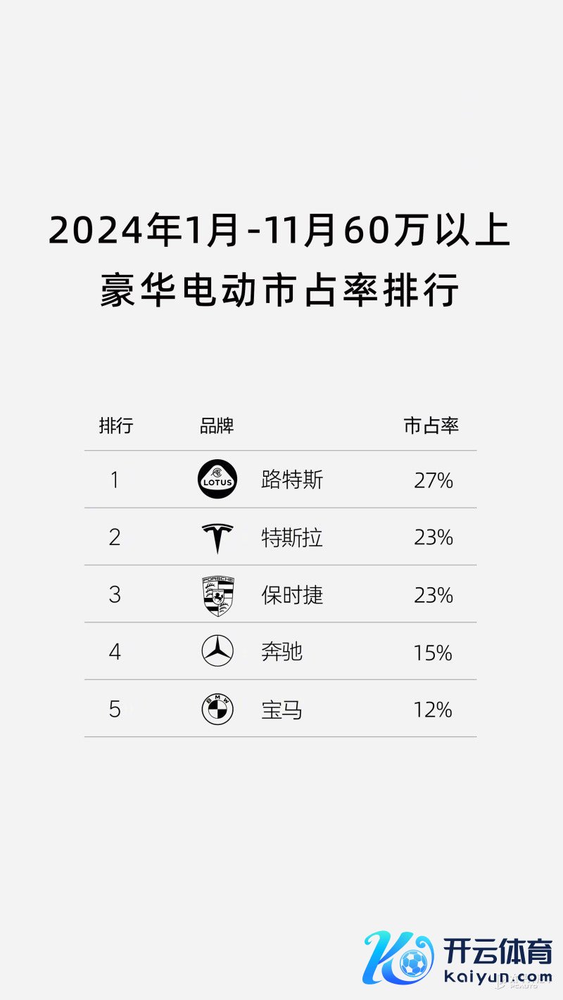 在刚刚昔日的2024年,路特斯凭借不凡的居品实力顺利登顶2024年1-11月60万以上豪华电车市集占有率榜首之位。行为该级别市荟萃惟一无二配备高阶智驾的居品,路特斯以其最初的科技上风与出色的驾乘体验,获得了市集的高度招供与赞赏。