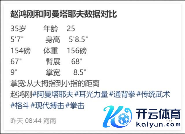 他们吐槽赵鸿刚作为通背拳的能手,在我方比敌手多打巴掌的情况下,还被敌手 KO,那学的不是三脚猫功夫吗?