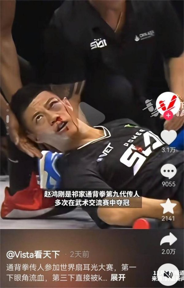 01 最近一位传武能手去参加了寰宇扇耳光大赛,但很缺憾他被 KO 了。 赛后他回话说颧骨有点骨裂,眼眶缝 5 针。 看着现场图很吓东说念主,但他示意不严重。 网友很思知说念这是一场什么比赛,让通背拳如斯无言? 蓝本几天前,沙特举办了寰宇扇耳光大赛,有一场是中国选手赵鸿刚对阵哈萨克斯坦选手阿曼塔耶夫。 比赛礼貌很简便:两东说念主轮替用手掌扇对方脸,不成遁藏,直到一方扛不住为止。 话未几说,第一趟合,阿曼塔耶夫先打,他一巴掌就让赵鸿刚眉骨出血; 赵鸿刚反击,敌手遁藏犯规,赵鸿刚就不错补打,只是后果