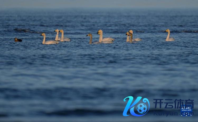 一群天鹅在闽江河口湿地觅食(1月31日摄)。