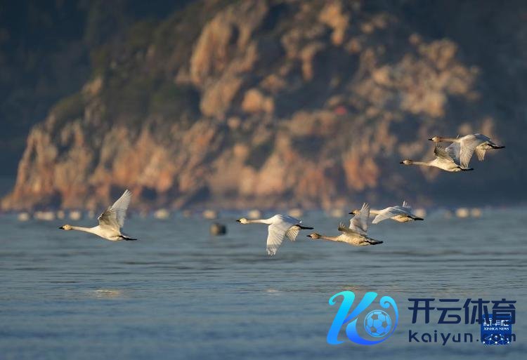 一群天鹅飞过闽江河口湿地上空(1月31日摄)。