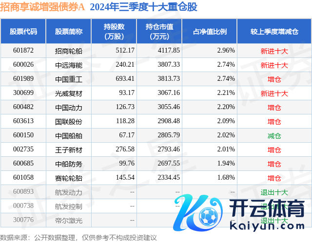 招商享诚增强债券A为债券型-搀和二级基金,字据最新一期基金季报领路,该基金金钱建立:股票占净值比22.6%,债券占净值比80.3%,现款占净值比0.22%。基金十大重仓股如下: