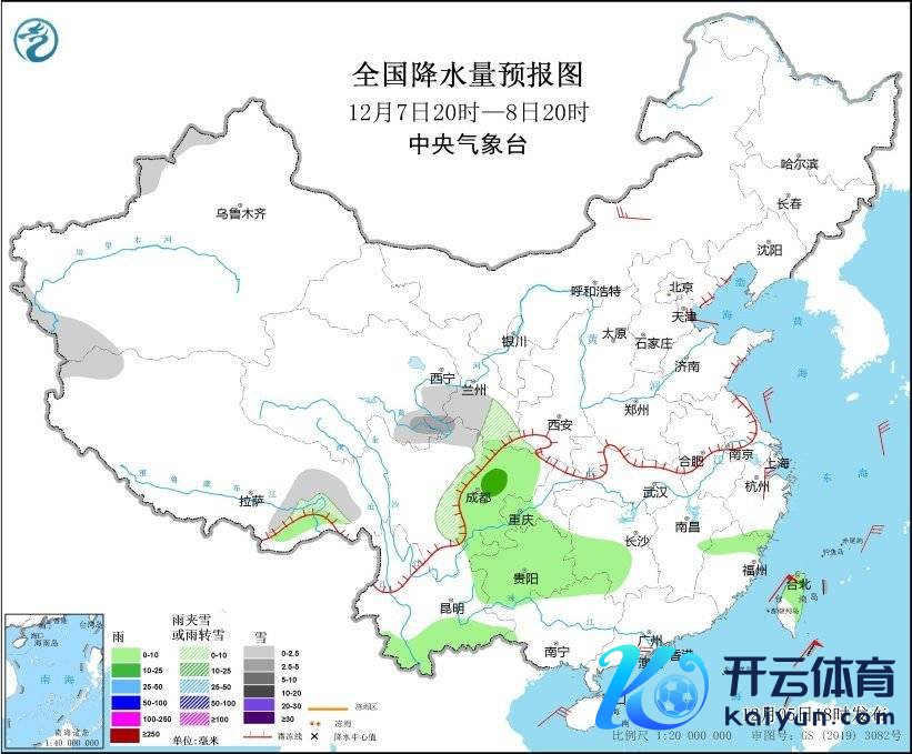 图3 宇宙降水量预告图(12月7日20时-8日20时)体育游戏app平台
