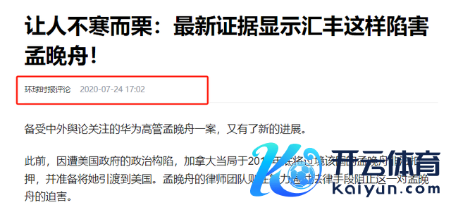 环球网】——《孟晚舟案凭据公开!汇丰银行谗谄,好意思国一手炮制》