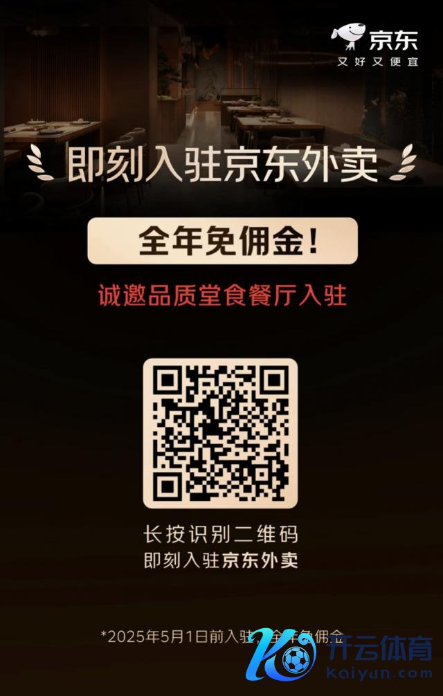 即刻入驻,全年 0 佣金。 2 月 11 日,京东外卖认真初始"品性堂食餐饮商家"招募!2025 年 5 月 1 日前入驻的商家,全年免佣金。 为更好地闲适奢靡者对"食物安全与品性外卖"的追求,招募只限"品性堂食餐厅"。京东外卖将为入驻商家提供全标的维持,助商家获益,共同股东外卖行业健康可抓续发展。 入驻可扫描海报二维码。 开云(中国)kaiyun网页版登录入口