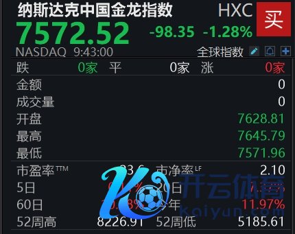 纳斯达克金龙中国指数下落1.28%,刷新日低。