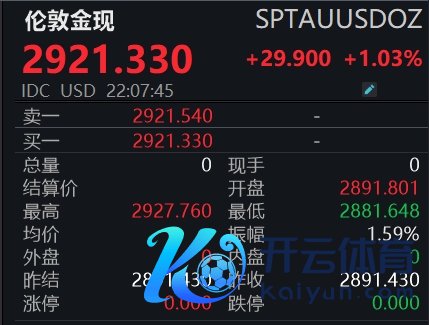 现货黄金日内涨超1%,现报2921.33好意思元/盎司。