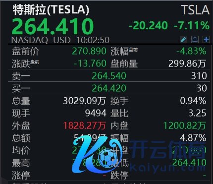 特斯拉好意思股盘前跌超4%,好意思国银即将特斯拉意见价从490好意思元下调至380好意思元。