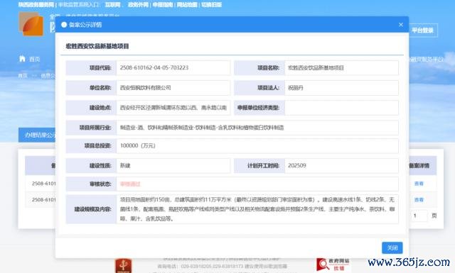 近日,西安恒枫饮料有限公司(简称:西安恒枫)宏胜西安饮品新基地技俩审批通过。