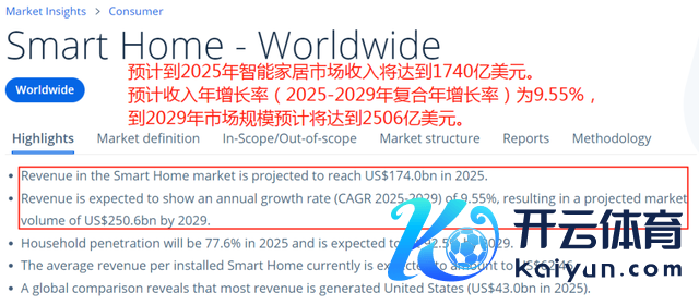 由此,智能家居市集迎来了前所未有的发展机遇。Global Data的阐彰着示,全国智能家居开导开销将以11%的复合年增长率保抓持重增长,从2023年的1195亿好意思元增长到2028年的2008亿好意思元。Statista的数据抓以相似的不雅点,沟通2025年智能家居市集收入将达到1740亿好意思元,到2029年市集限制沟通将达到2506亿好意思元。
