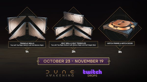 不雅察者立场建材执续膨大!即日起至11月19日,收看Twitch平台上任何相沿掉落的《Dune: Awakening 沙丘:醒觉》直播,即可取得新建材。