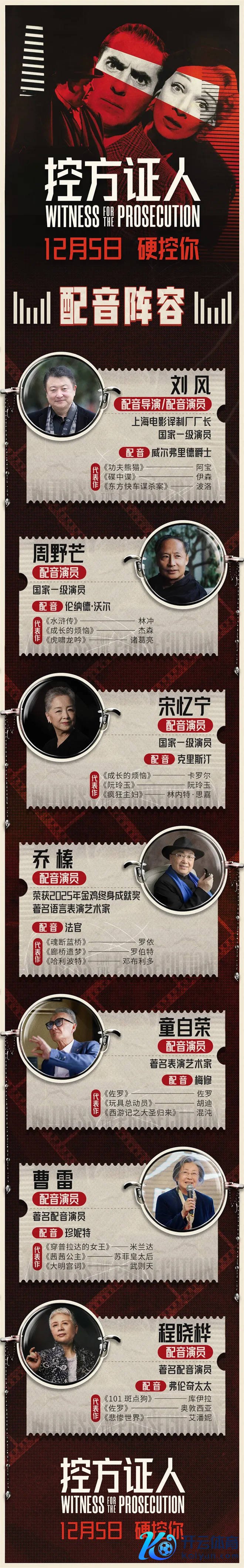 《控方证东说念主》汉文配音版由刘风为诡辩讼师威尔弗里德爵士献声。刘风的配音教授丰富,《功夫熊猫》阿宝、《哈利·波特》斯内普素质,《碟中谍》伊森·亨特,以及《东方快车谋杀案》波洛等变装,均出自他的声息。