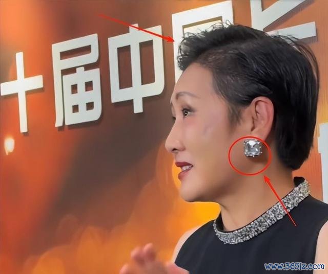 短发扎成三七分,用发胶打造出微微向后的发型,整得有点像个男东谈主;那对银色钻石耳饰,竟然比鸽子蛋还大,看得我都感慨。