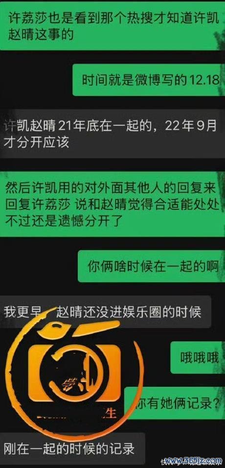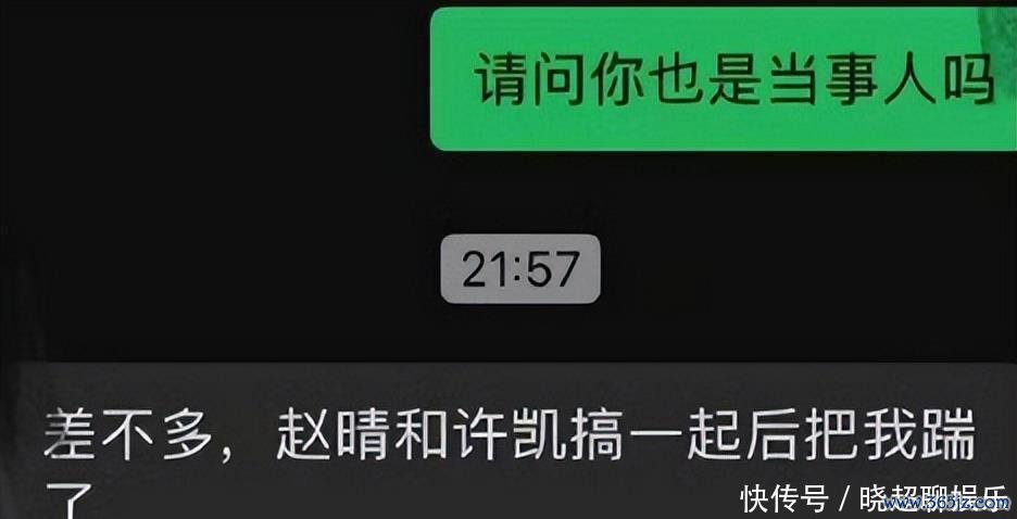 近日,赵晴疑出轨许凯事件中确当事东谈主站出来爆料了,在聊天中默示我方是在21年11月份和赵晴笃定关联的,服从赵晴在顽强许凯并有了亲密关联后,立马把我方给踹了,还强调赵晴和许凯应该是22年9月份透顶戒指的,许荔莎亦然通过各式音讯才发现赵晴掺和到了我方和许凯的心理中,而许凯在对话中简直承认和赵晴因为有点嗅觉是以尝试了在全部,但终末发现没想法延续开云体育,是以戒指了关联。