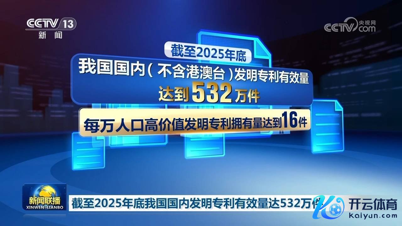 央视网音问(新闻联播):国务院新闻办公室1月23日举行发布会,国度学问产权局关连认真东谈主先容,适度2025年底,我国国内(不含港澳台)发明专利灵验量达到532万件,专利革命质地捏续普及,学问产权效益加快袒露。 r 2025年,我国共授权发明专利97.2万件,发明专利审查周期压减至15个月。 r r 适度2025年底,我国国内(不含港澳台)发明专利灵验量达到532万件,每万东谈主口高价值发明专利领有量达到16件,逾额完成十四五磋磨预期主义。其中,高价值发明专利领有量达到229.2万件,占国内灵
