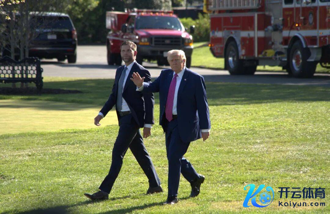 4月10日,好意思国总统特朗普(右)准备乘直升机离开华盛顿白宫。新华社发(李源清摄)