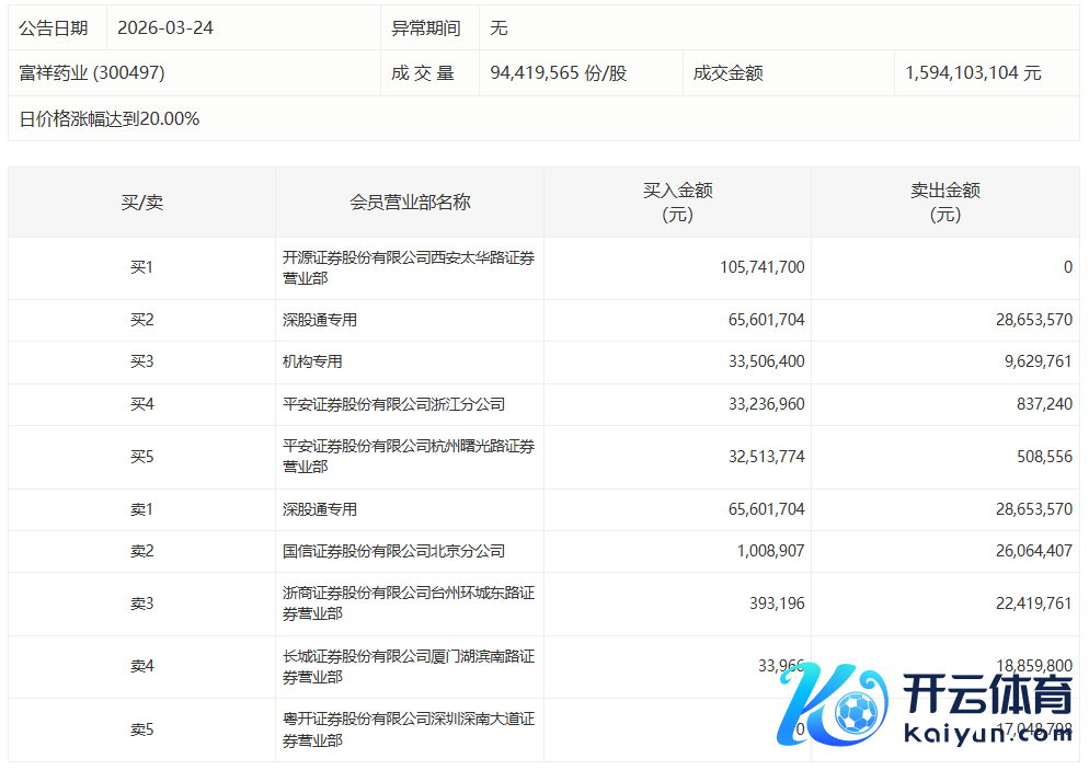 富祥药业当天20%涨停,开源证券西安太华路证券营业部净买入1.06亿元富祥药业当天20%涨停,开源证券西安太华路证券营业部净买入1.06亿元